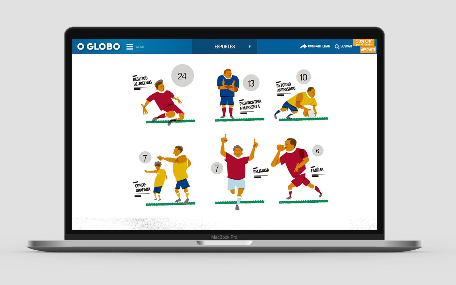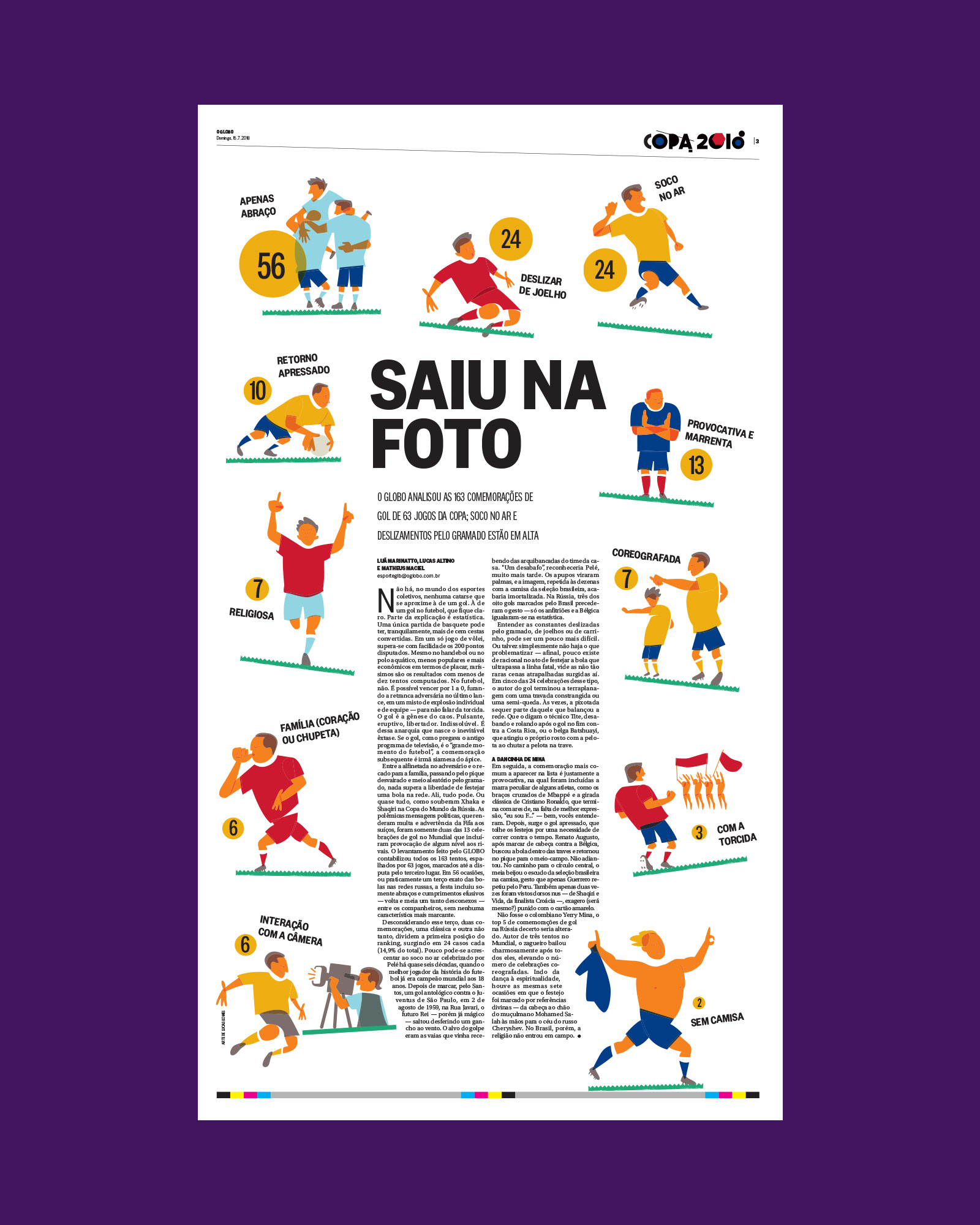 Illustrations for 'O Globo' about the celebration of goals in the 2018 World Cup. Published on July 15, 2018