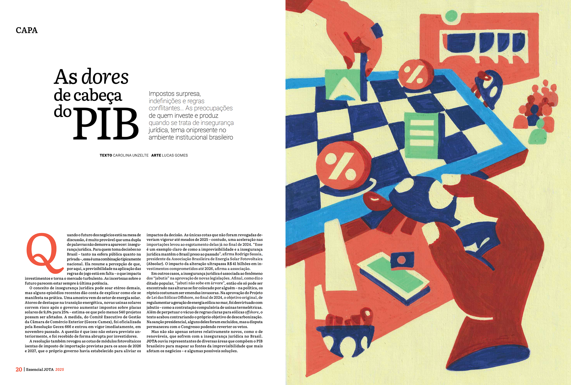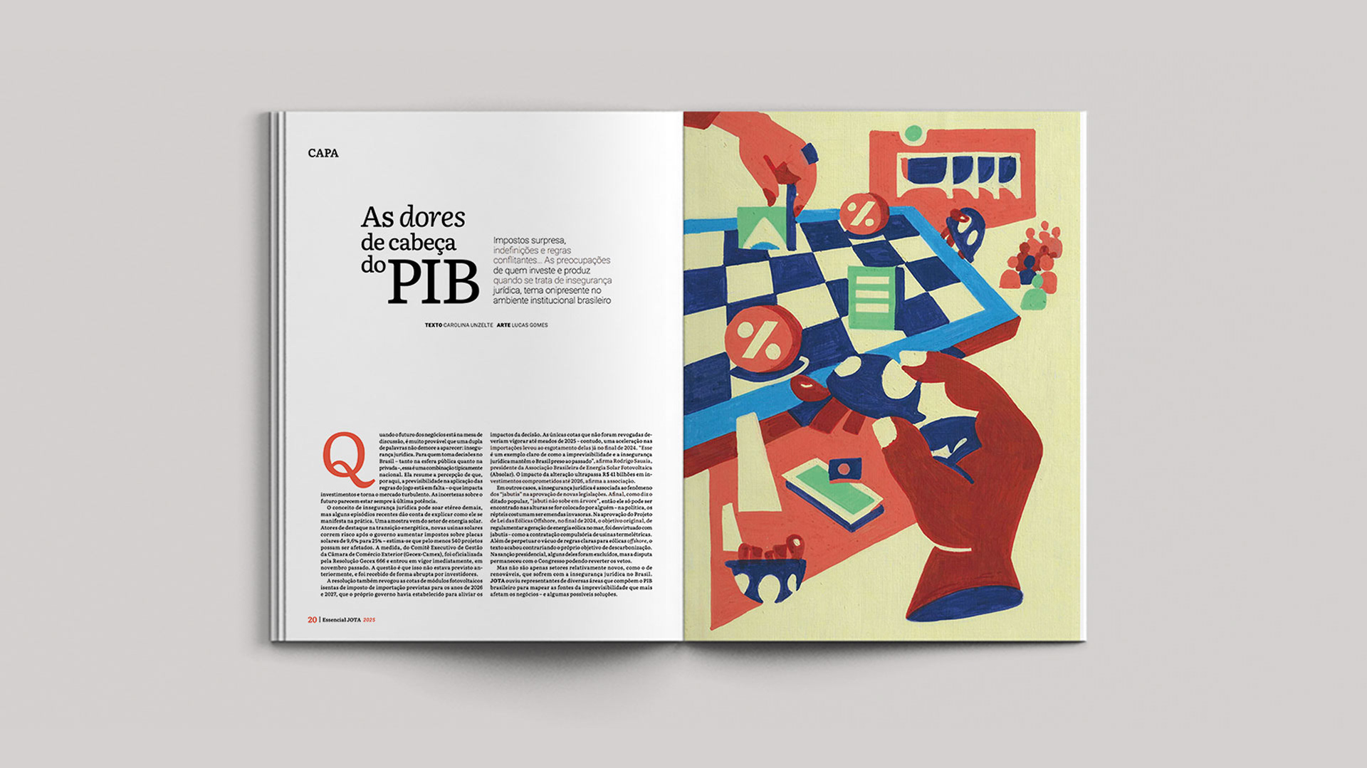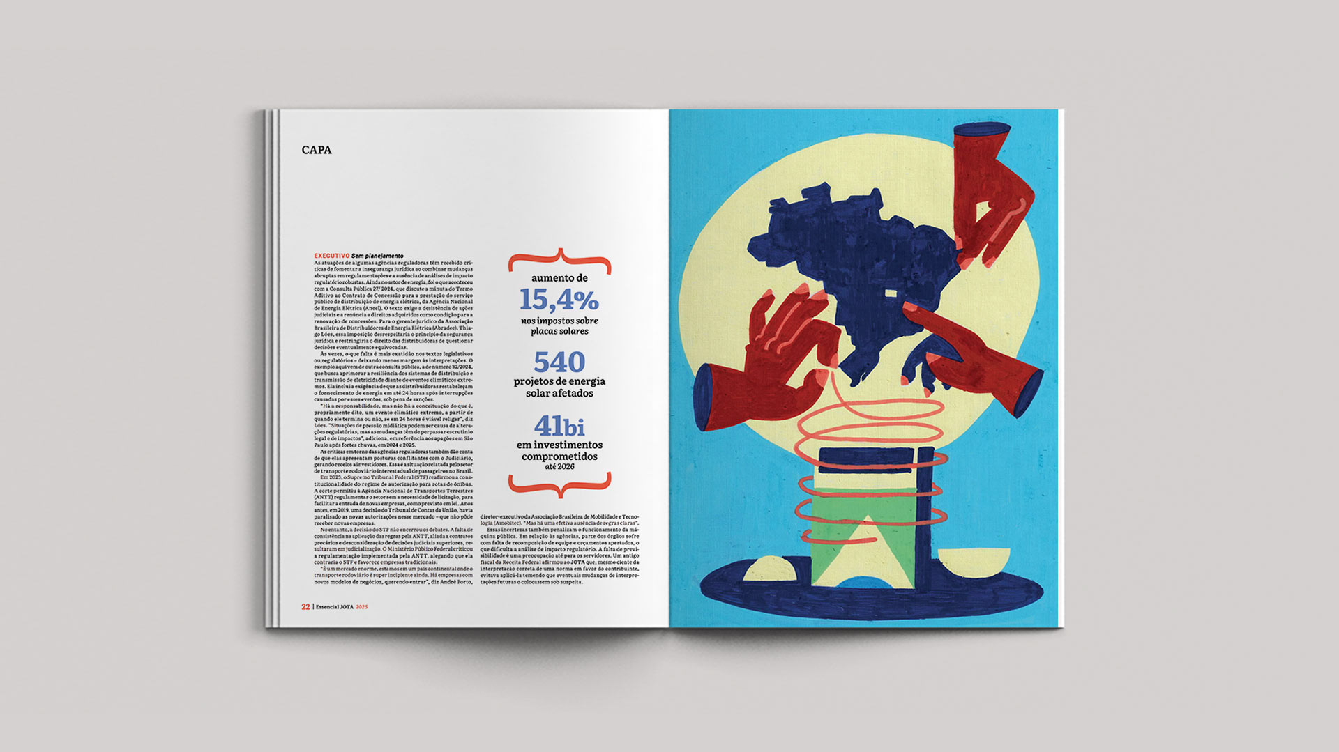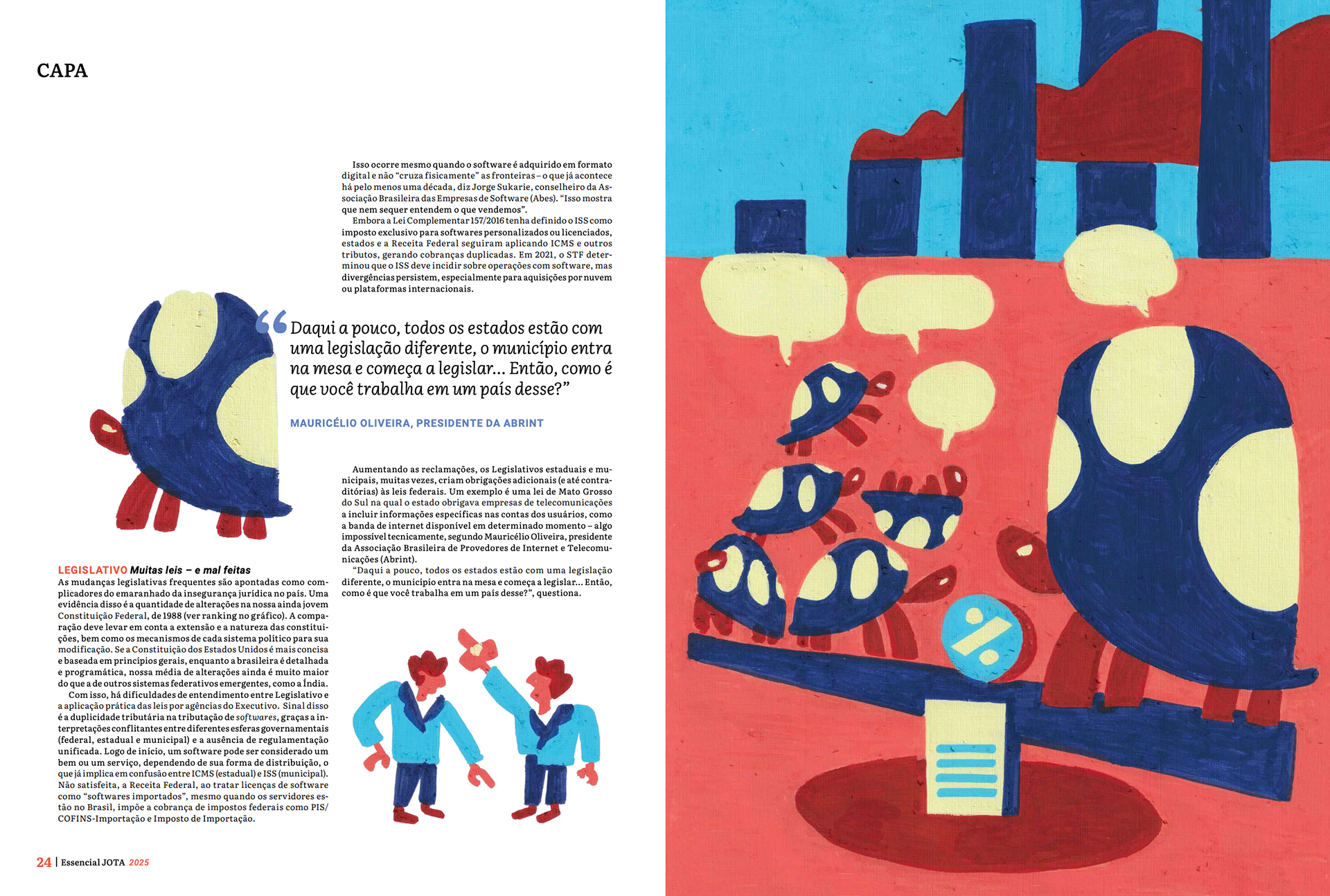 Series of paintings for JOTA Essencial's 10th-anniversary edition, distributed to clients and public authorities. The work reflects the political universe of 'Pesos e Contrapesos' in Brazilian democracy.